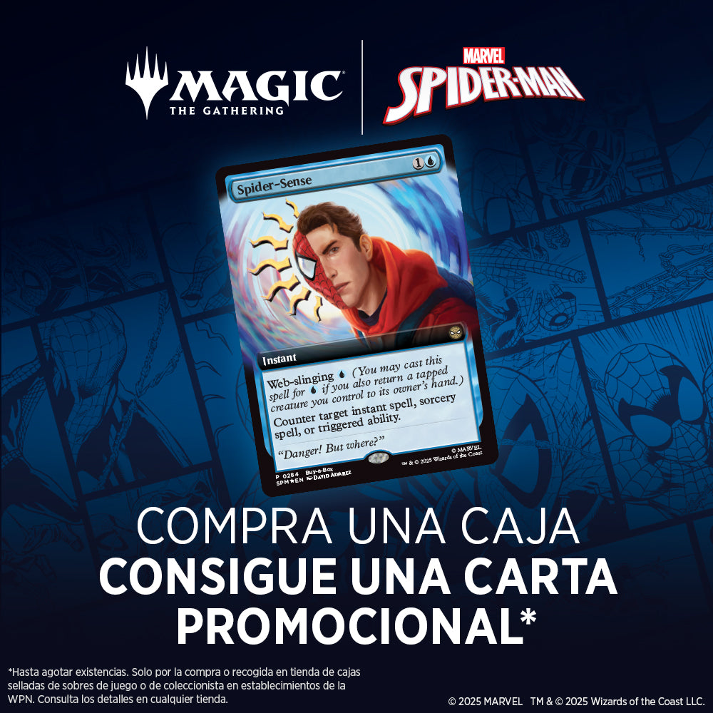 Tu amigo y vecino Spiderman llega balanceándose a Magic: The Gathering ¡y lo hace justo a tiempo! Reúne a lanzarredes de todo el Universo Spiderman y únete a ellos para acabar con los enemigos siniestros que amenazan la ciudad. No ignores tu sentido arácnido, que te ayudará a detectar tratamientos sin borde sacados directamente de los cómics.