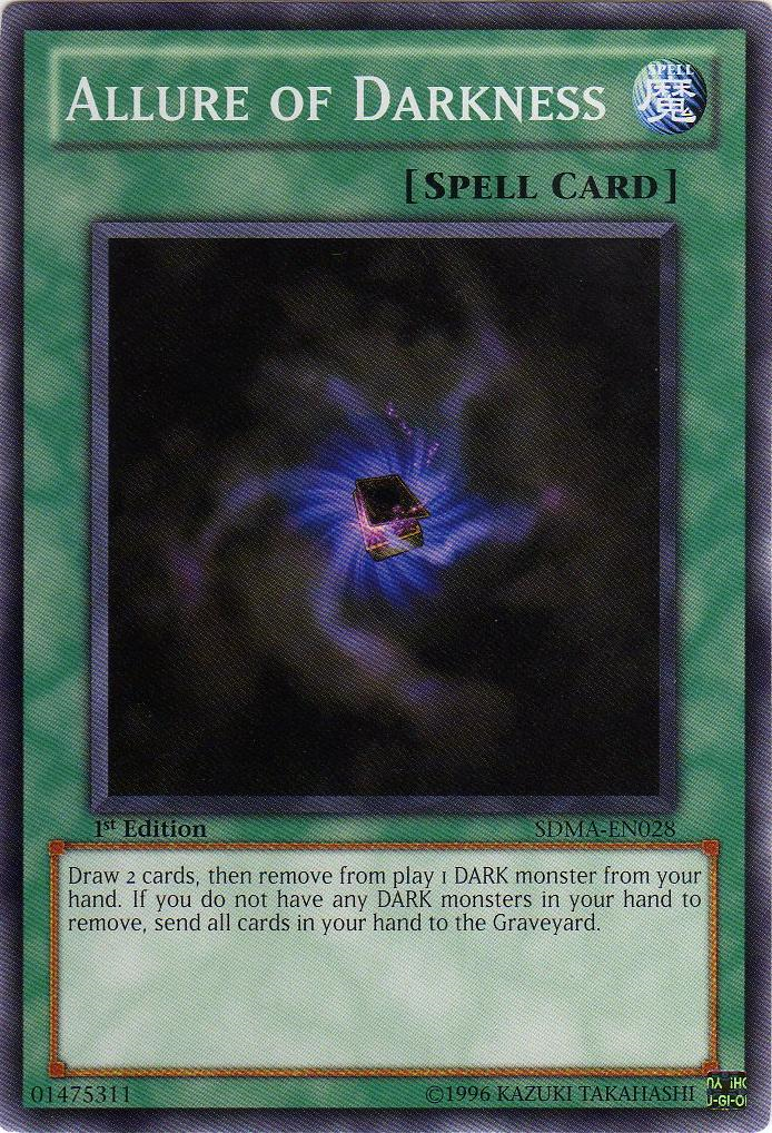 Draw 2 cards, then remove from play 1 DARK monster from your hand. If you don't have any DARK monsters in your hand to remove, send all cards in your hand to the Graveyard.