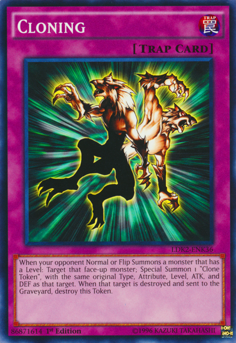 When your opponent Normal or Flip Summons a monster that has a Level: Target that face-up monster; Special Summon 1 "Clone Token", with the same original Type, Attribute, Level, ATK, and DEF as that target. When that target is destroyed and sent to the Graveyard, destroy this Token.