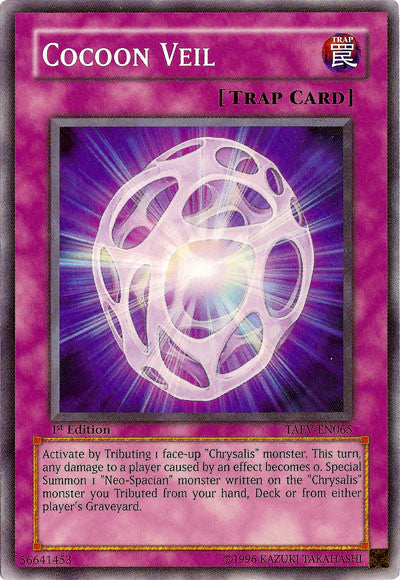 Activate only by Tributing 1 face-up "Chrysalis" monster. This turn, any effect damage to a player becomes 0. Special Summon 1 "Neo-Spacian" monster written on the "Chrysalis" monster you Tributed, from your hand, Deck or from either player's Graveyard.